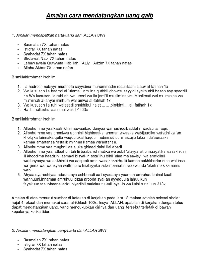 Amalan Abduljabbar R3 Pdf Txt from html.pdfcookie.com Rezeki juga bisa diartikan segala sesuatu yang dapat menunjang kelangsungan hidup manusia dan mengantarkan kepada kehidupan yang lebih baik lagi. Keutamaan zikir tasbih, tahmid dan takbir 33 kali. Lebih baik lakukan aktivitas yang mendatangkan banyak pahala serta membuka pintu rezeki. Keistimewaan dan keutamaan surah yasin; 3 amalan pembuka rezeki yang diajarkan rasulullah saw. Berwudhu sebelum tidur sangat dianjurkan oleh rasulullah saw kepada umat muslim. Jangan pernah tinggalkan salat dhuha, selain mendapatkan pahala yang banyak salat dhuha juga dapat memperlancar rezeki, kata ustadz kiki. Doa sebelum tidur supaya diturunkan rezeki dari langit , laut dan bumi !!